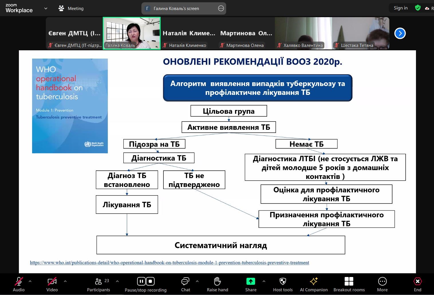 • робота первинної ланки в ЕСОЗ: можливості та рекомендації щодо супроводу та лікування хворих на туберкульоз;
