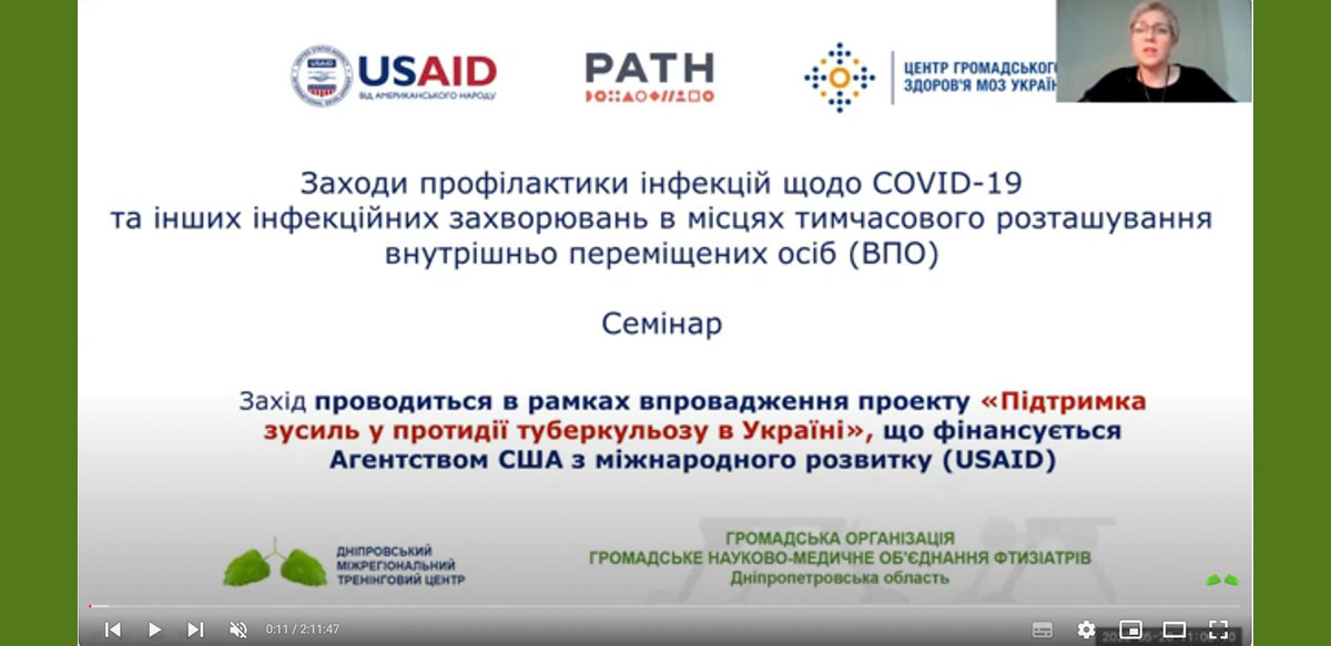 засвоїти основні профілактики інфекцій при організації та перебуванні в місцях тимчасового розташування внутрішньо переміщених осіб (далі – ВПО) в рамках Проекту «Підтримка зусиль у протидії туберкульозу в Україні».