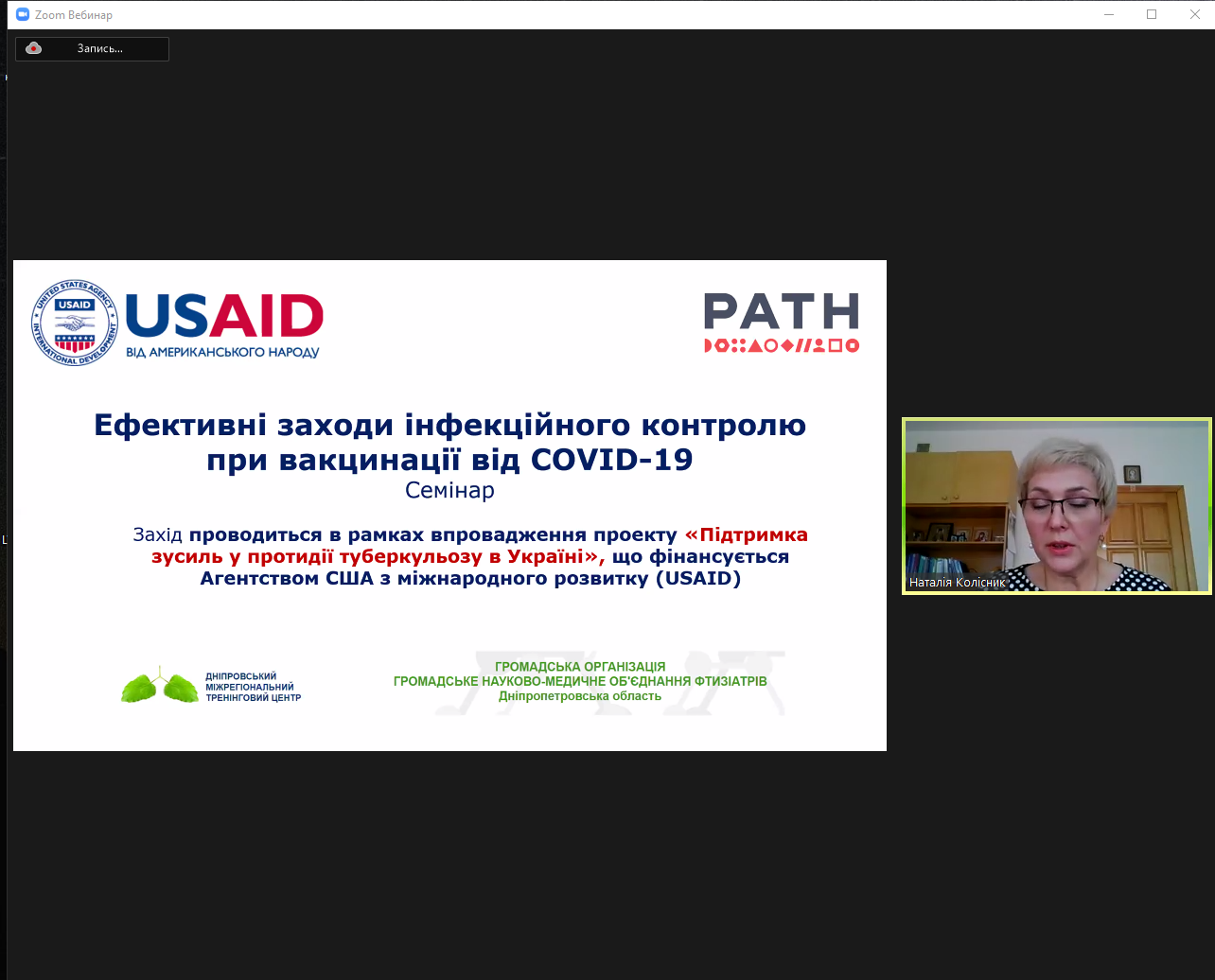 обговорити теоретичні та практичні компоненти впровадження інфекційного контролю при організації та проведенні вакцинації від COVID-19 в пунктах вакцинації, розташованих в закладах охорони здоров’я, центрах масової вакцинації населення та при виїзних вакцинальних сесіях в рамках Проекту «Підтримка зусиль у протидії туберкульозу в Україні».